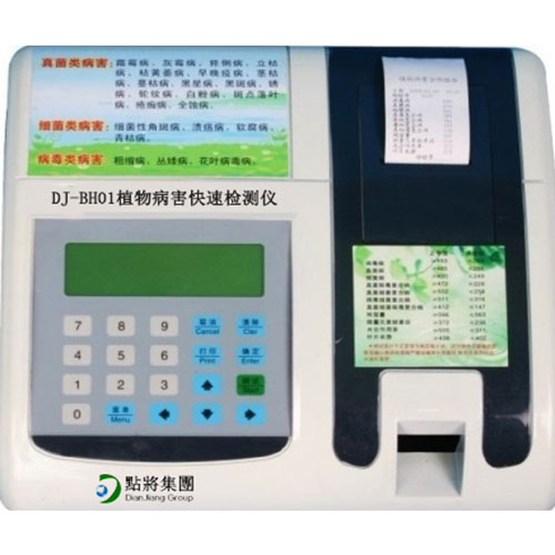 檢測原理:根據(jù)生物物理學(xué)方法,一般健康植物的膜位在-50mv左右,外液挎膜電阻均在105Ω/cm左右,膜電容基本保持在1uf。作物一旦染病,必然導(dǎo)致分子振動光譜的變化和膜電位的升高,不同病菌的接種必然發(fā)生變化,根據(jù)這一原理,通過電導(dǎo)和光衍射的方法就能夠分辨出病害的種類及類型,這項技術(shù)是比較先進(jìn)的。