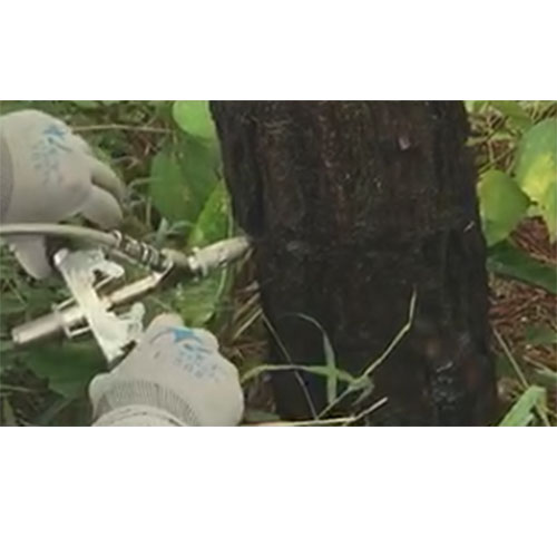 3、 使用注射器將3-5ml藥劑通過針頭注射到活性邊材,注射速度根據(jù)樹的吸收調(diào)整;