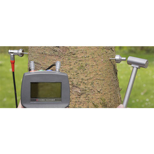 用途:測量聲音在樹木中的傳播速度,依據(jù)不同生長階段、不同樹種的聲音傳播速度,判斷樹木品質(zhì),包括環(huán)列、裂縫和空洞的判斷??蓮V泛應(yīng)用于判斷活體木材的緊實度、木材品質(zhì)評估、古樹健康評測以及古建筑保護(hù)等領(lǐng)域。方法:樹木兩端分別放置錘子和傳感器,錘子在一端敲擊后,另一端傳感器接收信號,并將信號反饋至讀數(shù)表,讀數(shù)表顯示聲音傳播速度。單位:m/s特點:·使用特別的磁性螺絲,保證對樹木的傷害最小化。·錘式傳感器靈