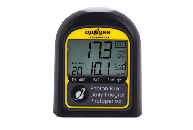 用途:Apogee新的DLI-400測量儀設計用于測量400-700納米的光合有效輻射(PAR),是一種低成本選擇,只在陽光和一些寬帶光源下準確??梢詰脺y量后的修正系數(shù)來提高光源下的準確性;除了測量PAR,DLI-400測量儀還可以計算每日光積分(DLI)和光周期,PPFD、DLI 和光周期數(shù)據(jù)可在屏幕上查看或通過 USB-C 電纜下載進行分析,可直接放在水平面上也可安裝到三腳架、夾具或木樁上。