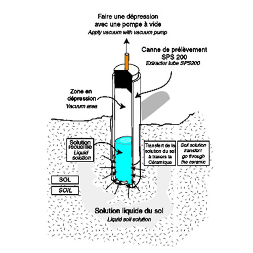 原理:多孔陶瓷頭安裝在一段空PVC管的底部,該管子插入土壤中來收集土壤溶液,通過給PVC管一定的負壓,土壤中可自由移動的水分透過多孔陶瓷頭進入管中,一段時間后,通過真空泵,將收集到的溶液再轉(zhuǎn)移到收集瓶中。然后把收集瓶帶回實驗室分析土壤溶液成分。SPS200土壤溶液收集系統(tǒng)的多孔陶瓷頭有兩種類型:31mm直徑和63mm直徑,后者收集的土壤溶液是前者的2倍。