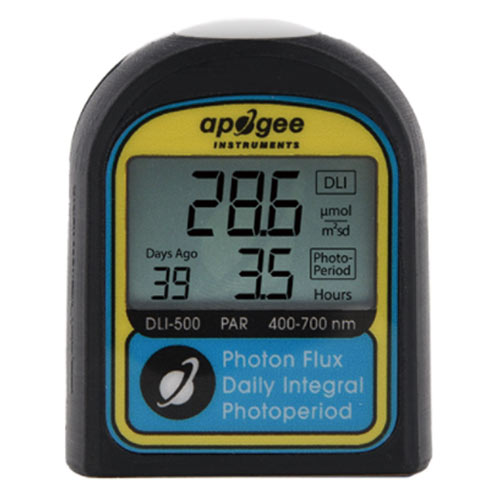 Apogee的新型 DLI-500測(cè)量?jī)x設(shè)計(jì)用于測(cè)量 400-700 nm的光合有效輻射 (PAR),并且在各種光源下數(shù)據(jù)精度都很好。除了測(cè)量 PAR,DLI-500儀表還計(jì)算日光積分 (DLI) 和光周期。