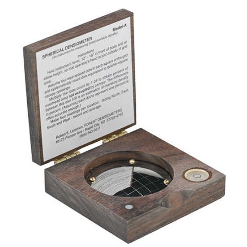 用途:有助于在森林間伐中建立間距標(biāo)準(zhǔn)和確定再生的光照要求。 兩種型號(hào)都有一個(gè)鏡面反射器,上面刻有一個(gè)由 24 個(gè)四分之一英寸正方形組成的十字形網(wǎng)格,以描繪出頭頂上的冠層密度情況。 胡桃木盒尺寸為 3 x 3。內(nèi)置調(diào)平氣泡。 包括操作說(shuō)明。技術(shù)參數(shù):水平氣泡內(nèi)置尺寸3” x 3”材質(zhì)胡桃木
